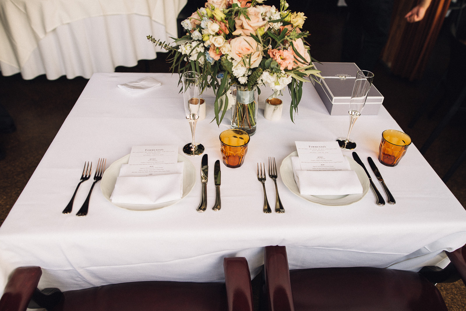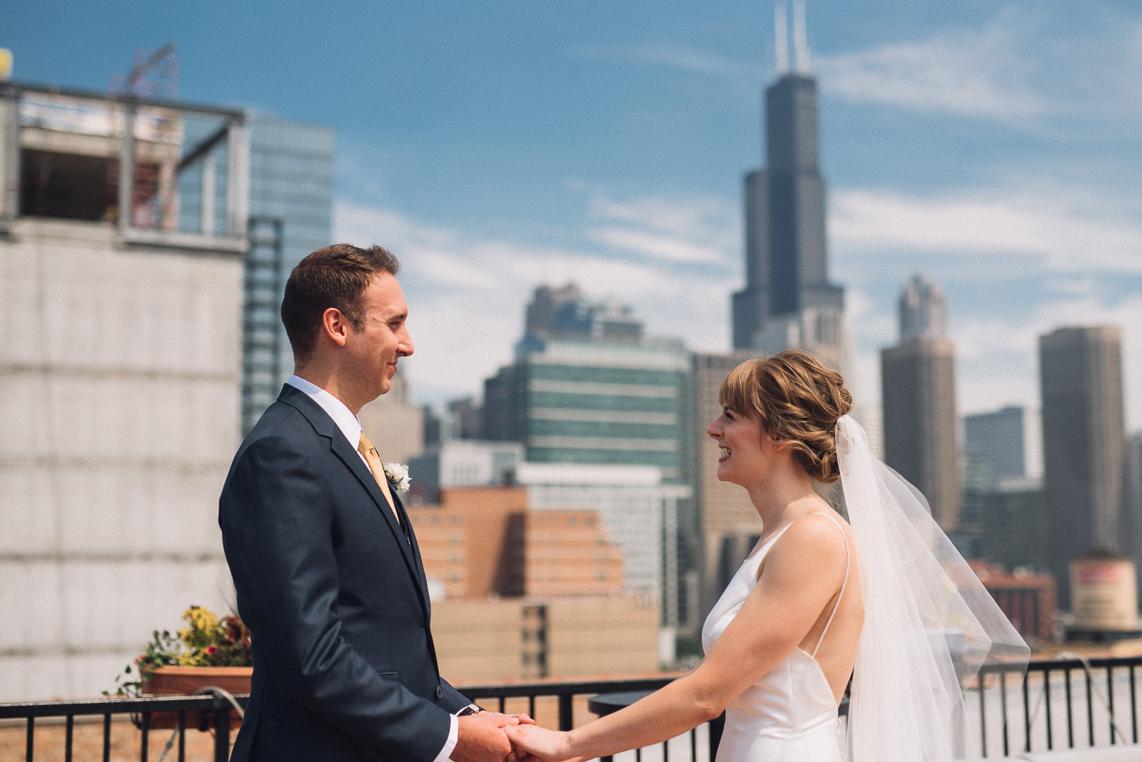 Cecilia and Chase had a wonderful downtown West Loop wedding. After getting ready at the Ace hotel Chase met Cecilia for an epic first look on a rooftop overlooking the Willis Tower. The panoramic Chicago skyline filled every photo as they embraced and had a special moment together. We travelled to the Adler Planetarium and captured some beautiful portraits of the couple on Lake Michigan with the Chicago skyline making the the photos instant classics. Cecilia and Chase had their intimate ceremony and reception in the West Loop at Formentos Italian Restaurant. After tying the knot they celebrated and danced into the evening. The upstairs event room at Formentos was beautiful with exposed brick and original hardwood floors. We are happy to have been able to capture their special day and tell their story. Enjoy some of our favorite photos, we sure enjoyed capturing them! -Cheers
